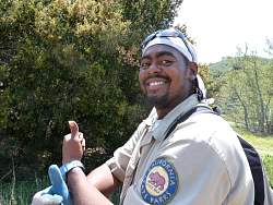 Building a rolling dip on Sin Nombre Trail to keep rainwater from running down and worsening the trenching